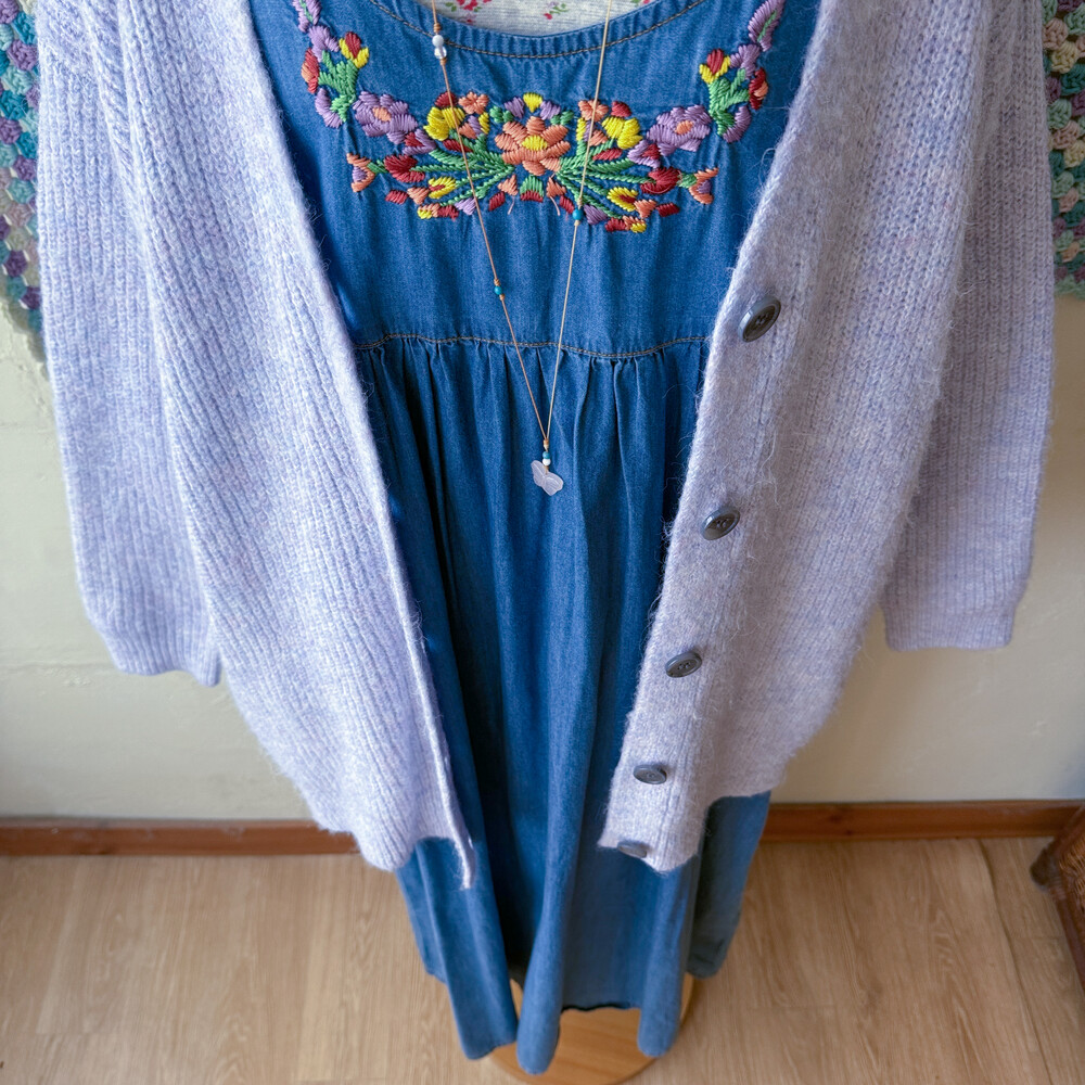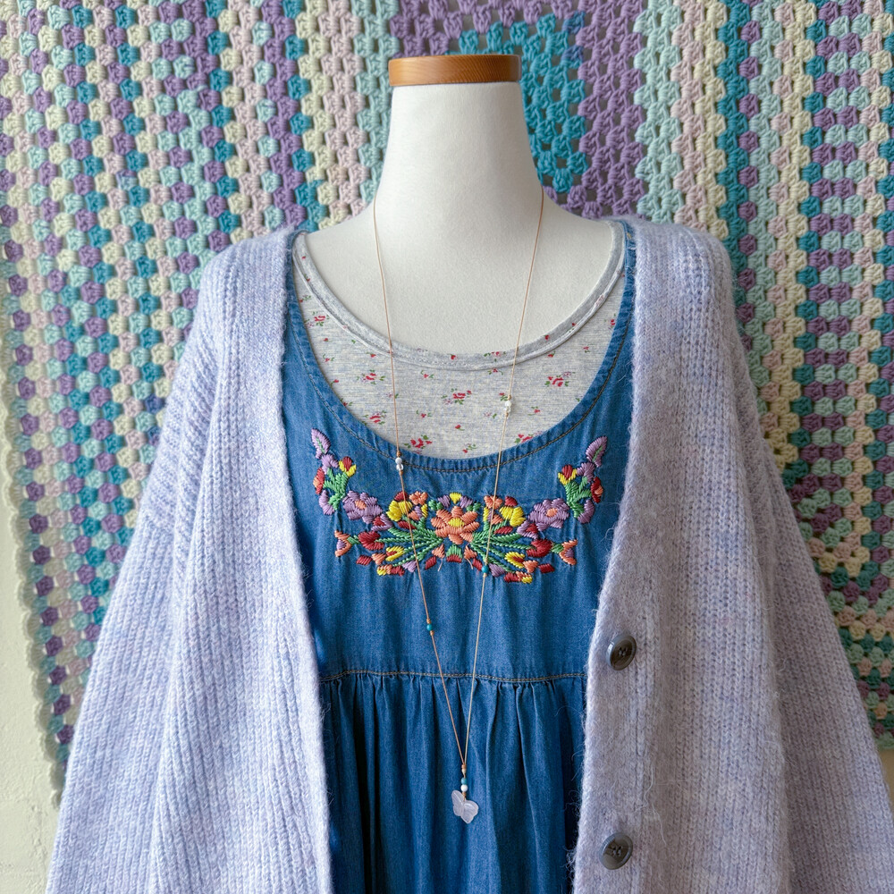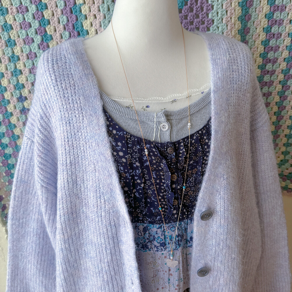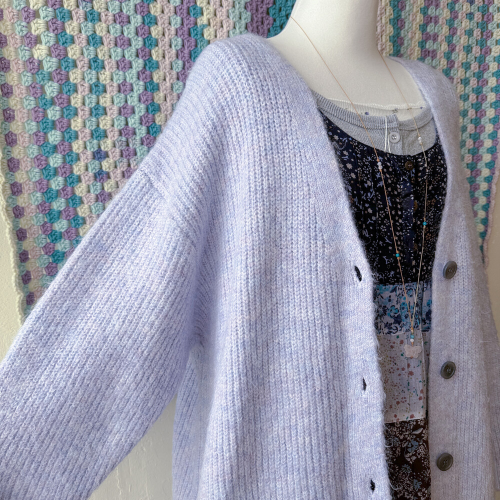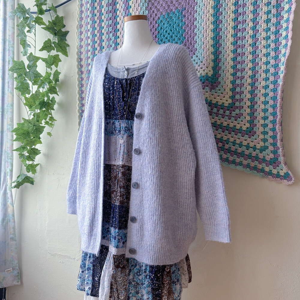 보라, 청보라색이 믹스된 브이넥 롱가디건이에요