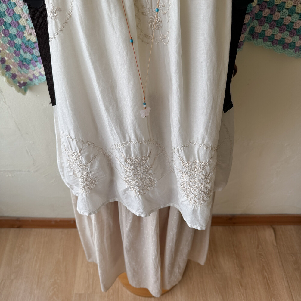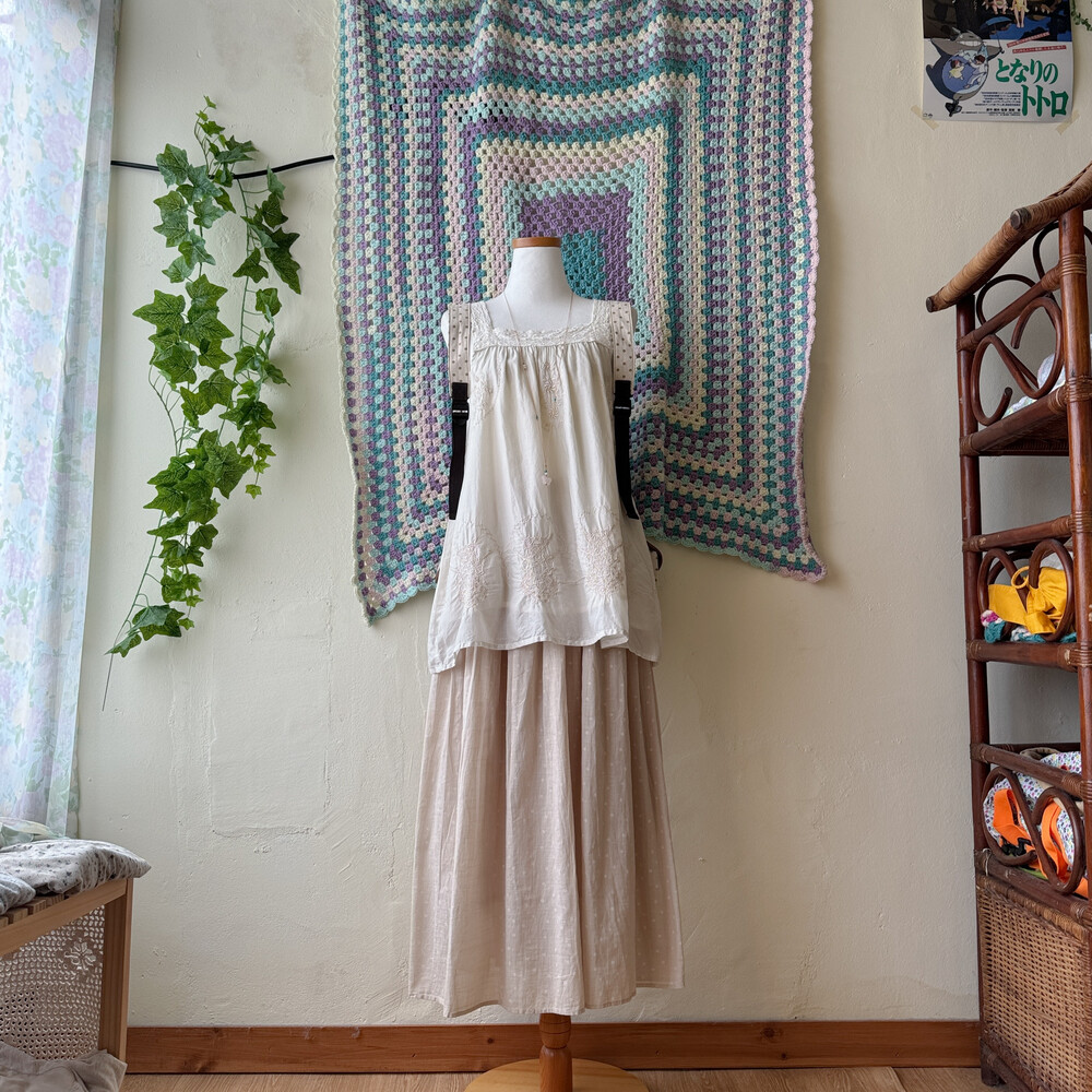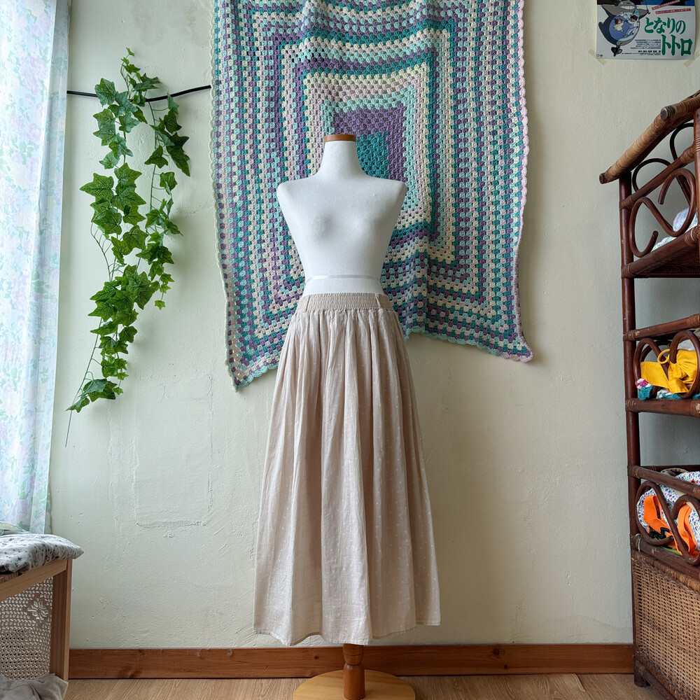 오트밀 색감의 코튼 롱스커트예요