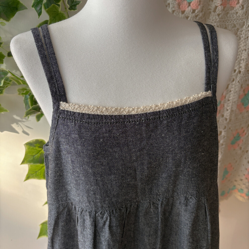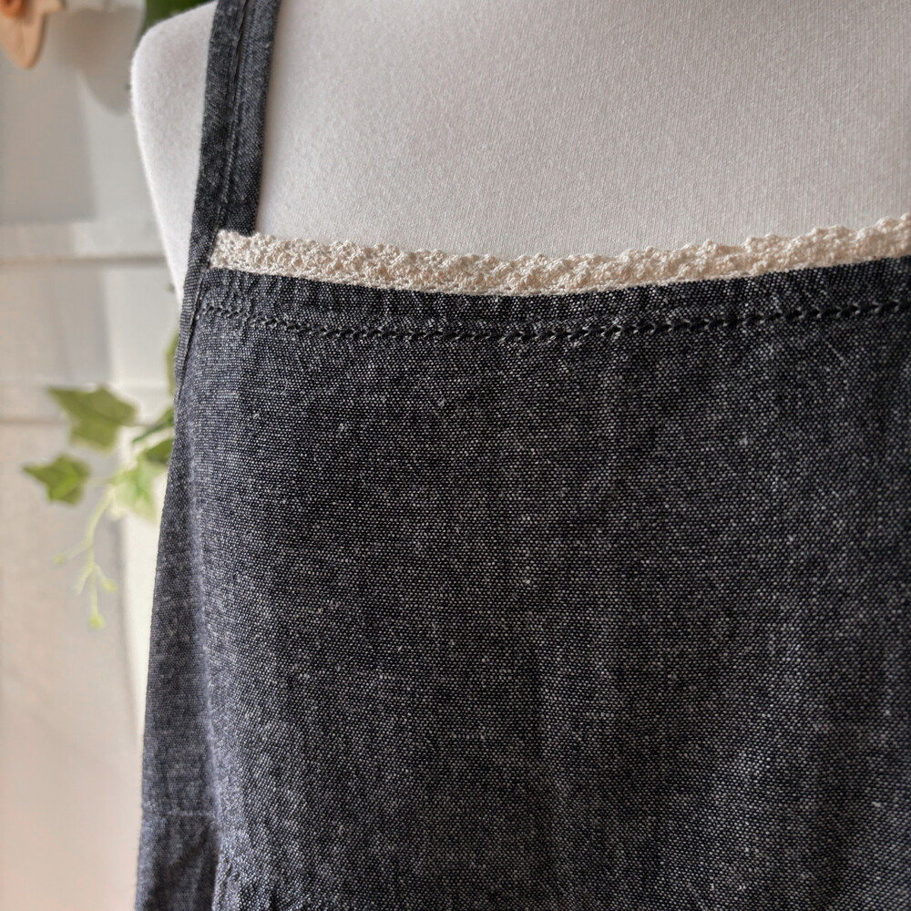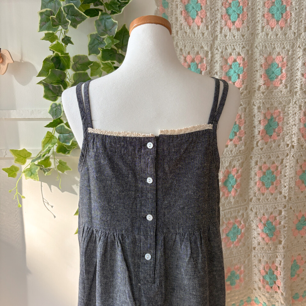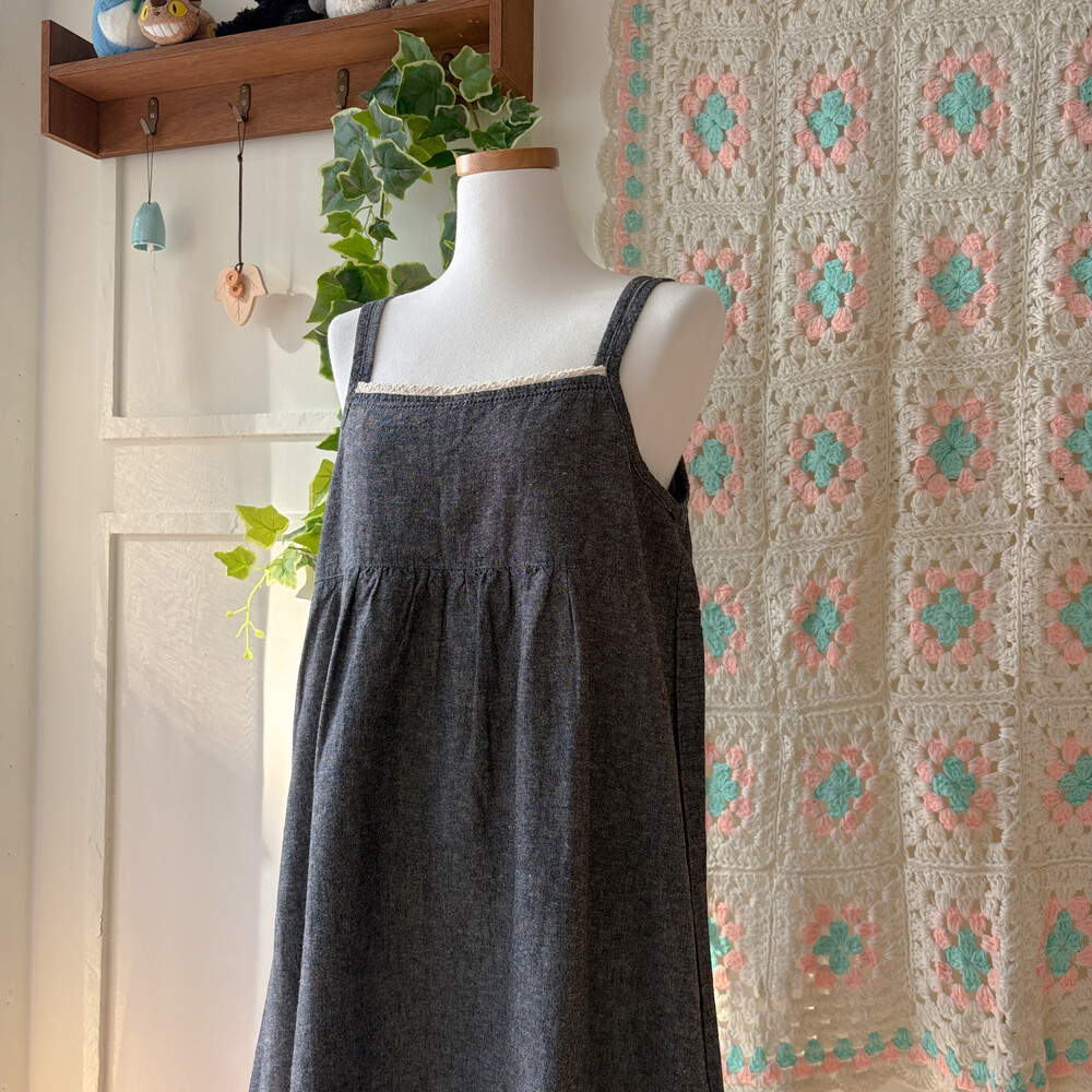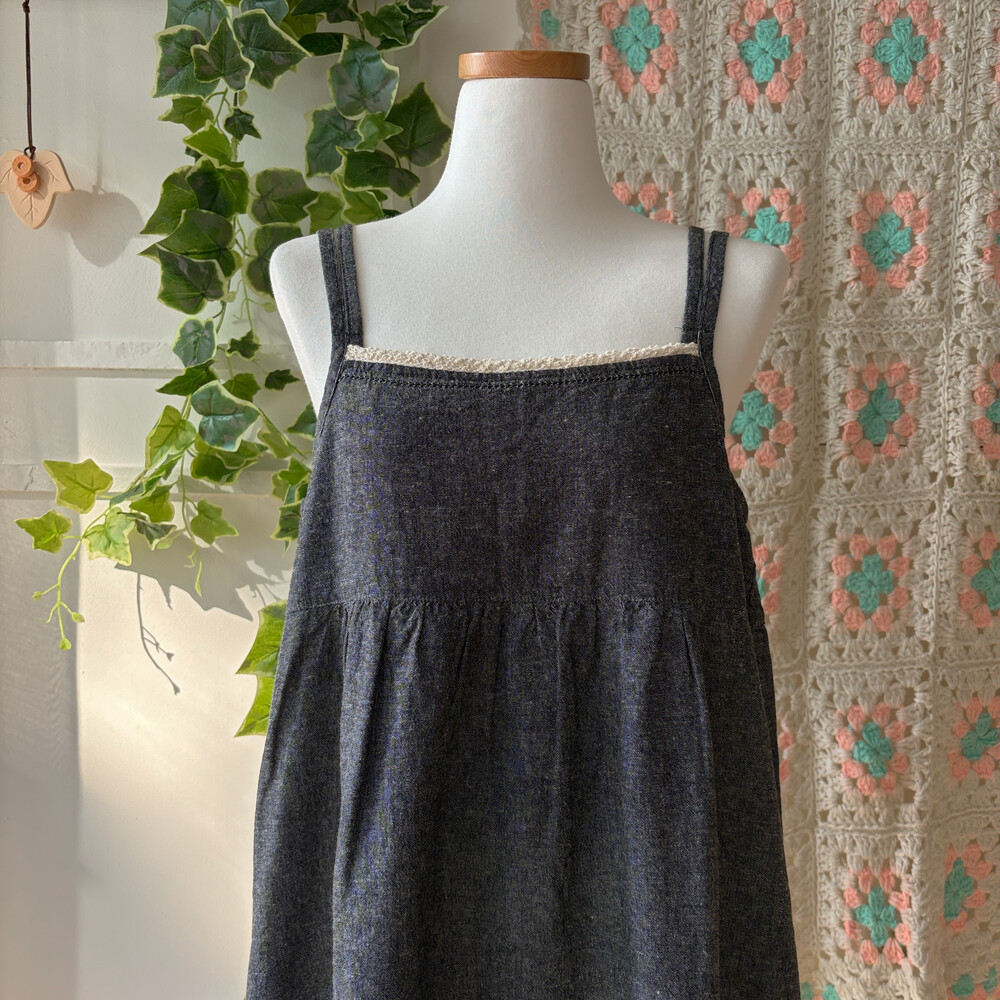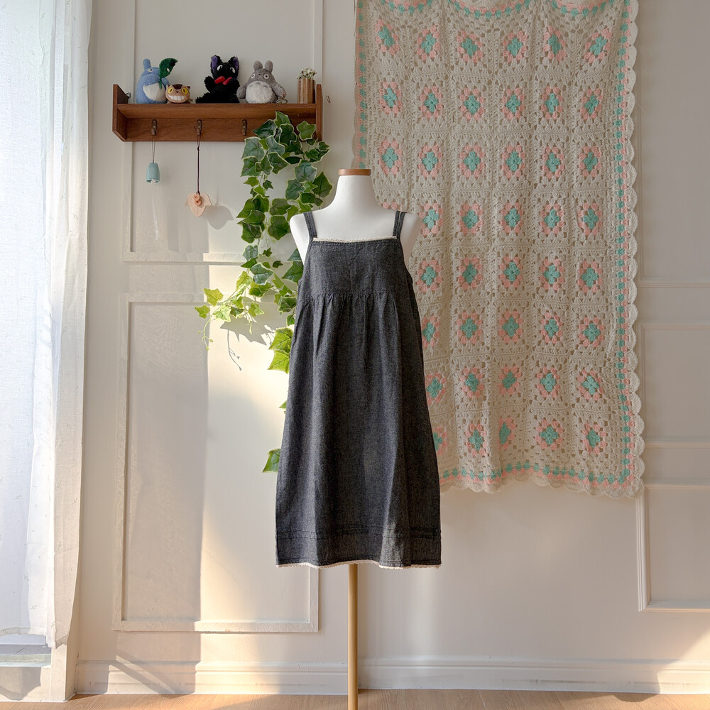 흑청 색감의 백버튼 끈원피스예요
