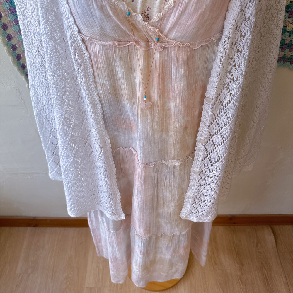 뮤트한 색감의 타이다이 원피스예요