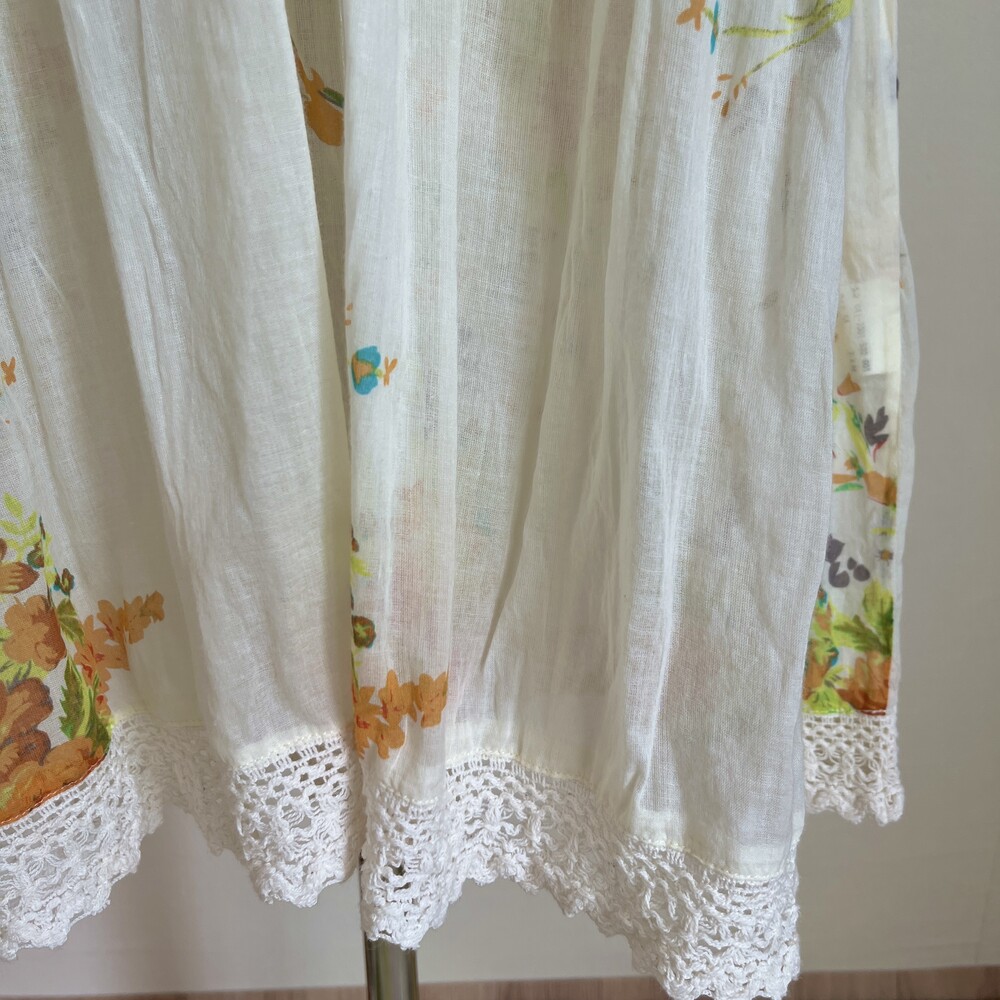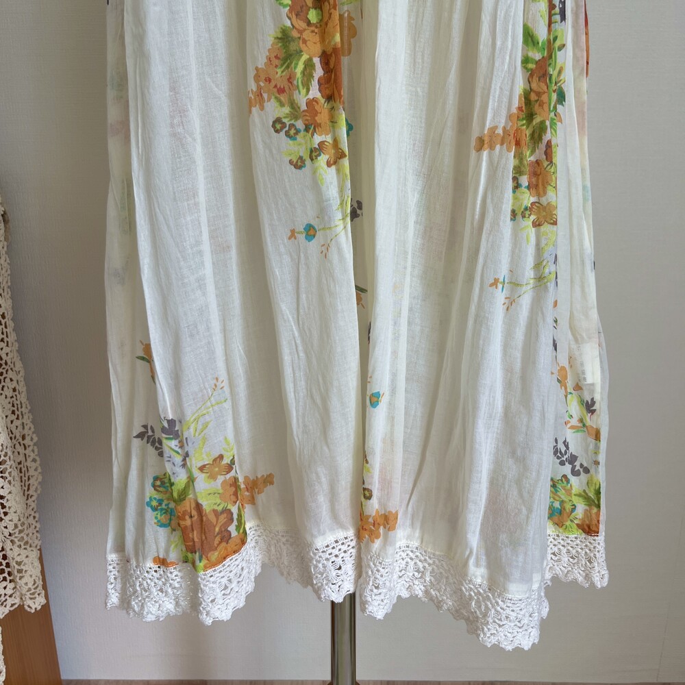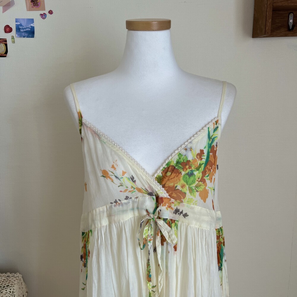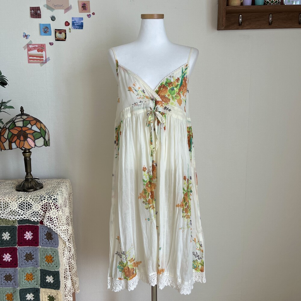 노란색감의 아이보리 베이스의 브이넥 코튼 원피스예요