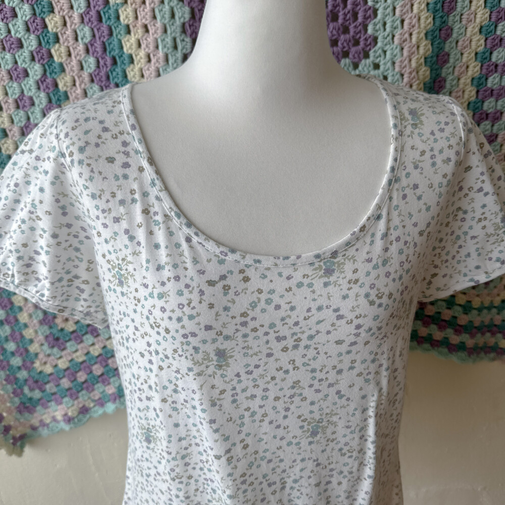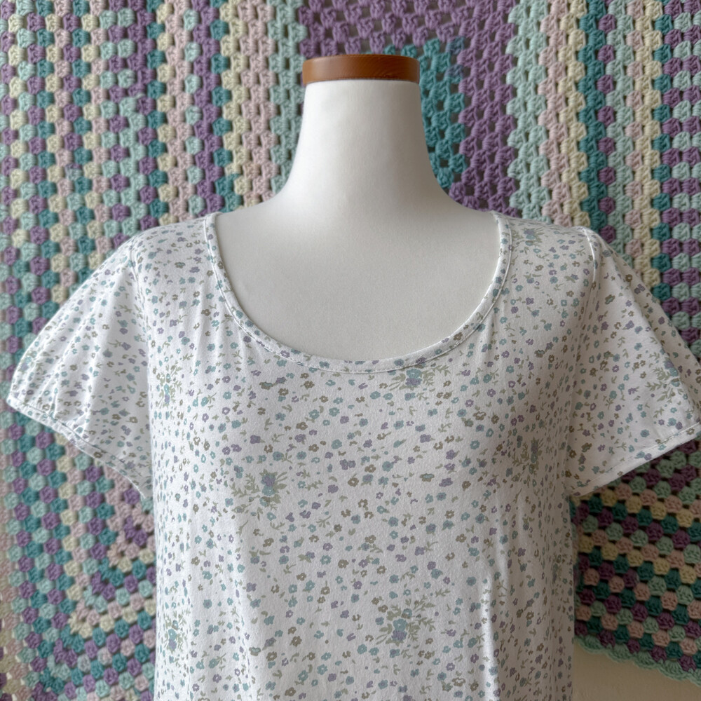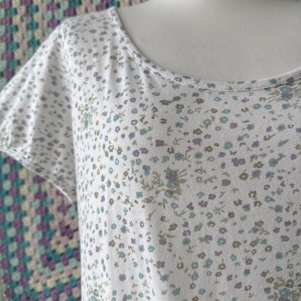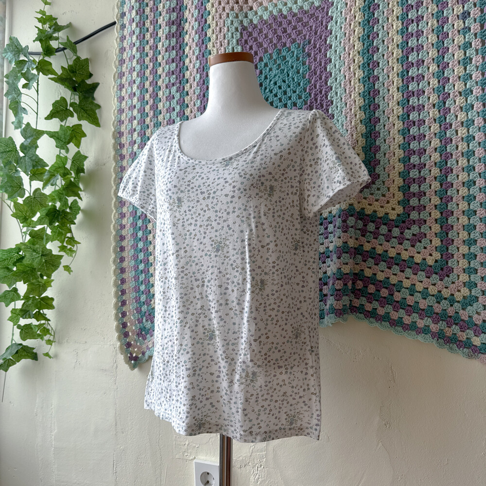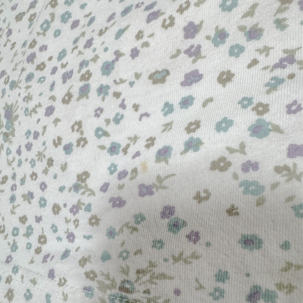밀키한 화이트 색감의 꽃무늬 반소매 티셔츠예요