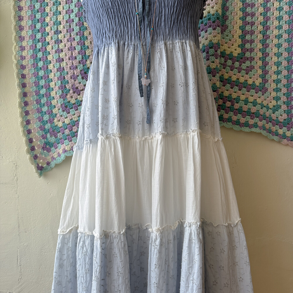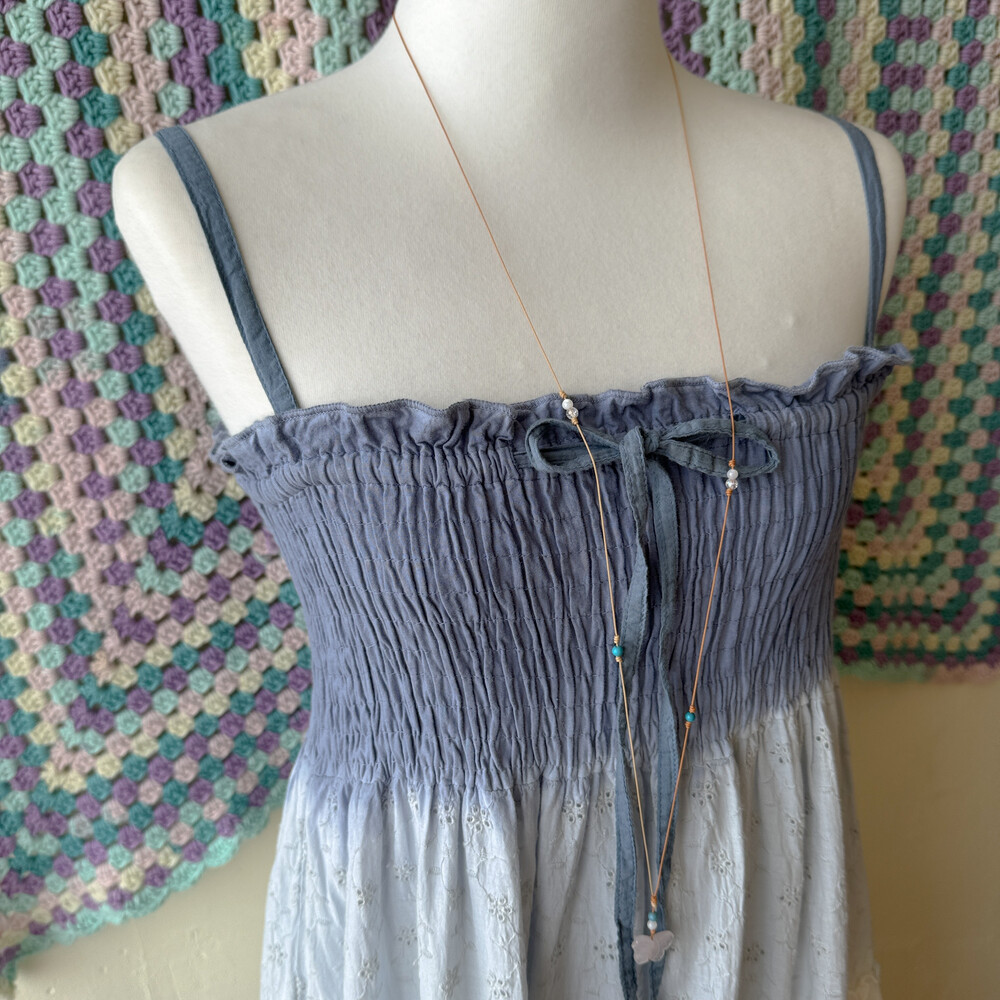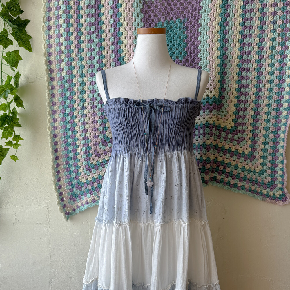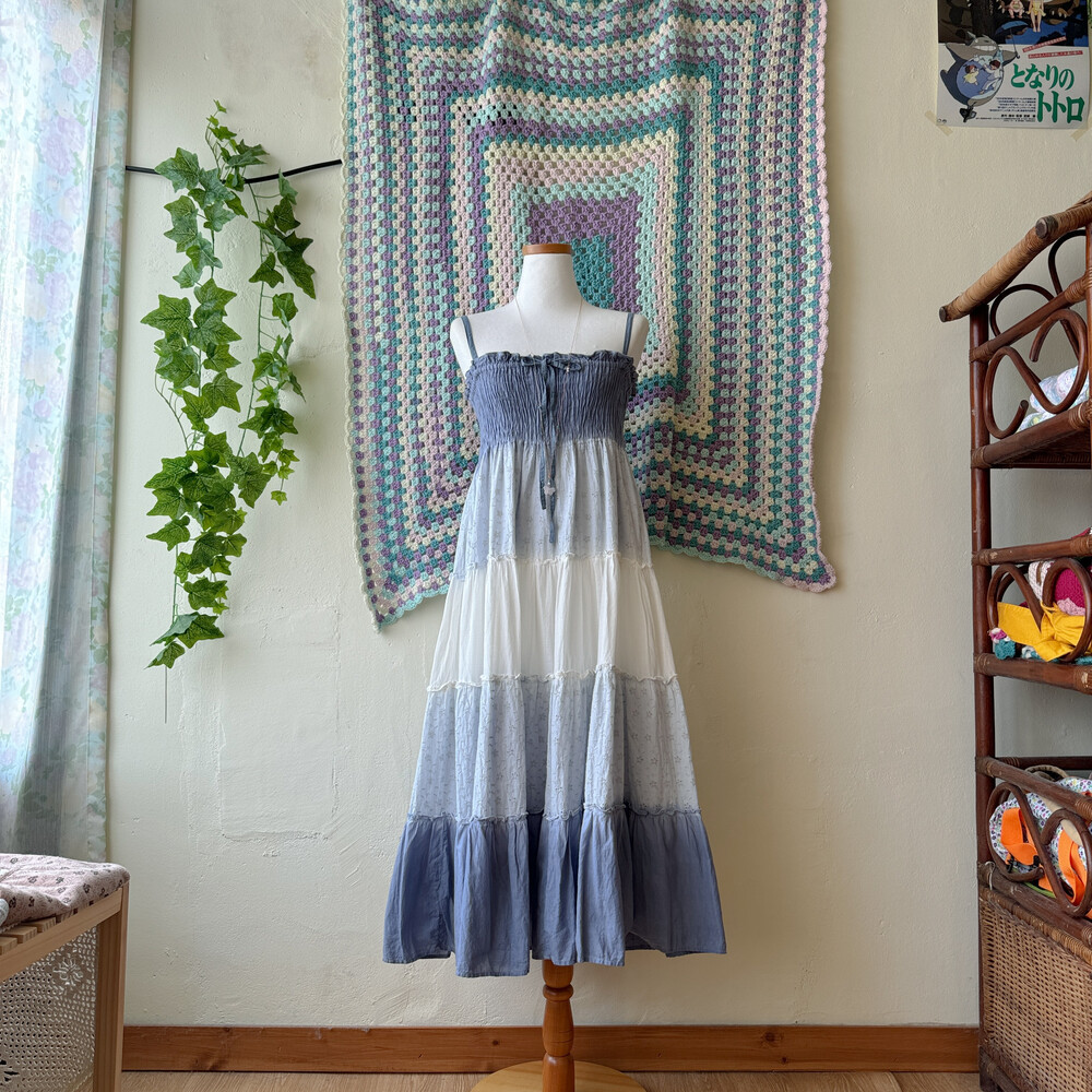 블루 그라데이션 디자인의 코튼 끈원피스예요