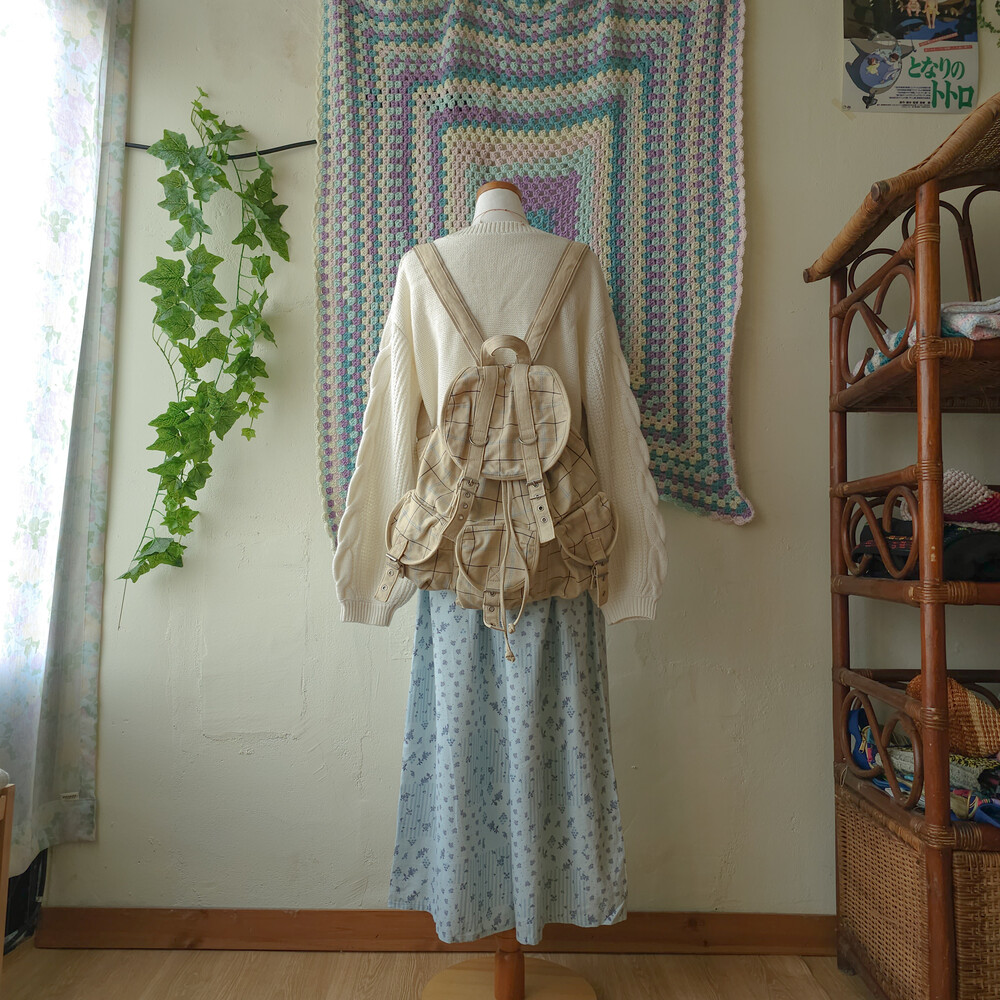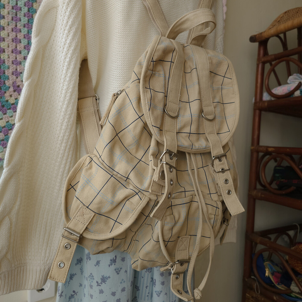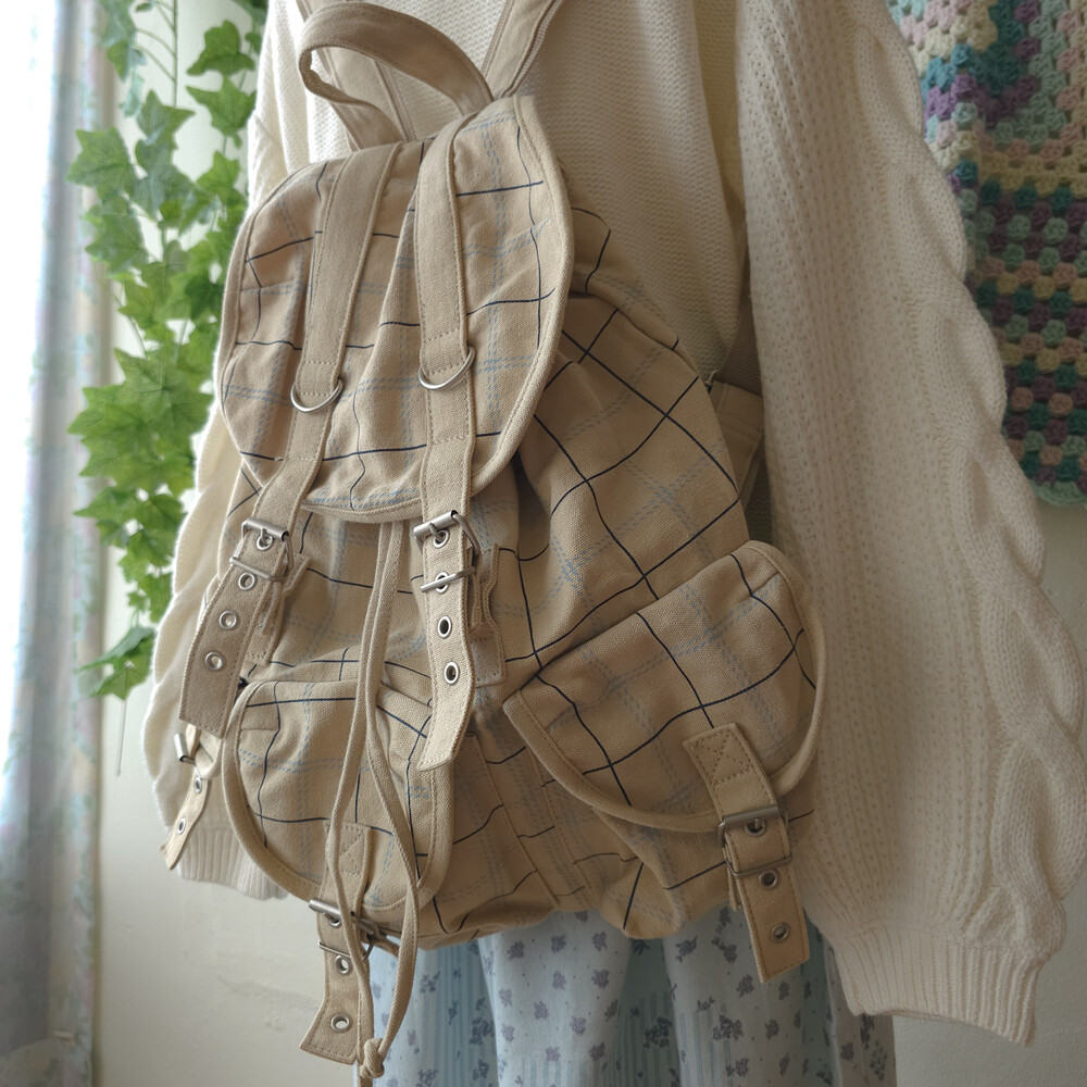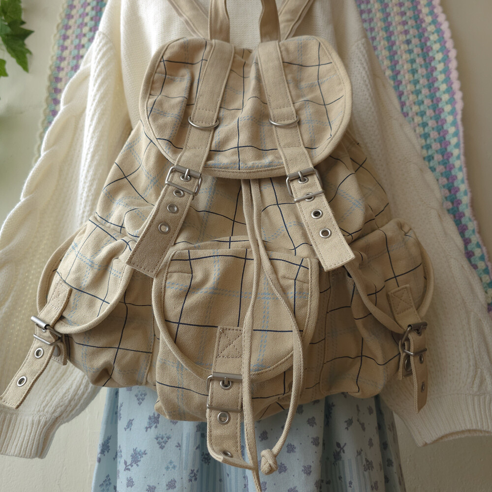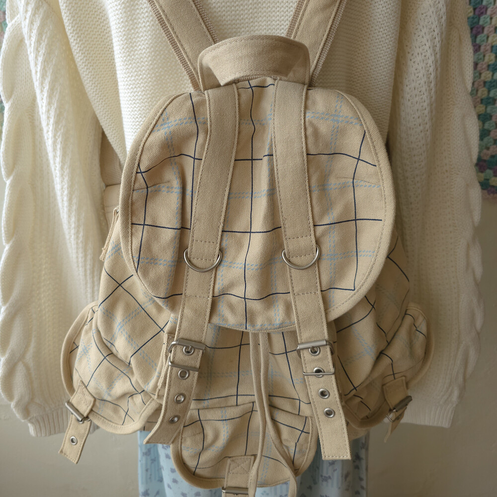 진베이지 색감의 캔버스 3포켓 백팩이에요