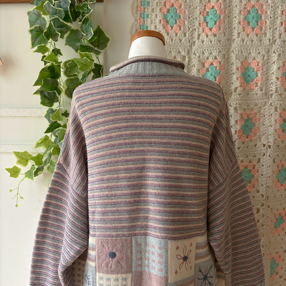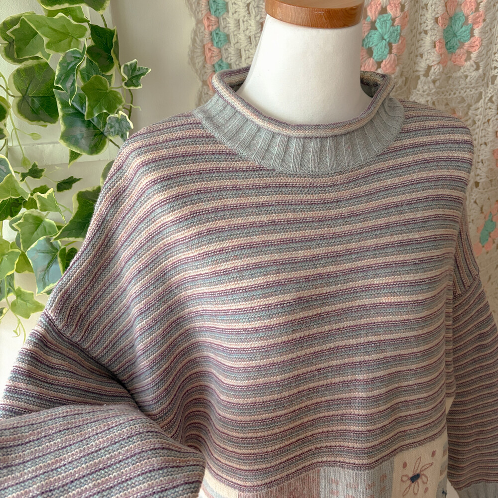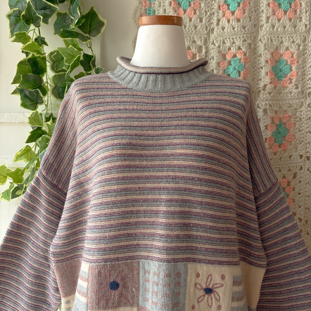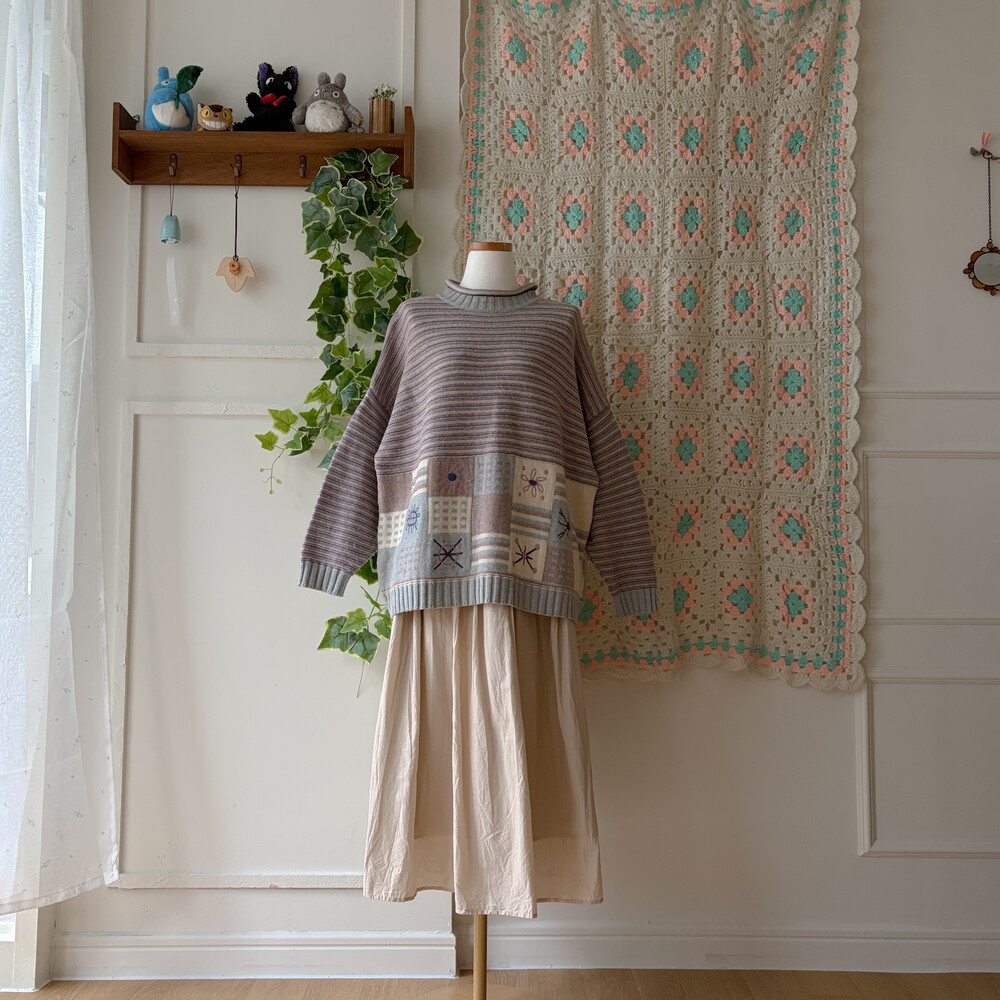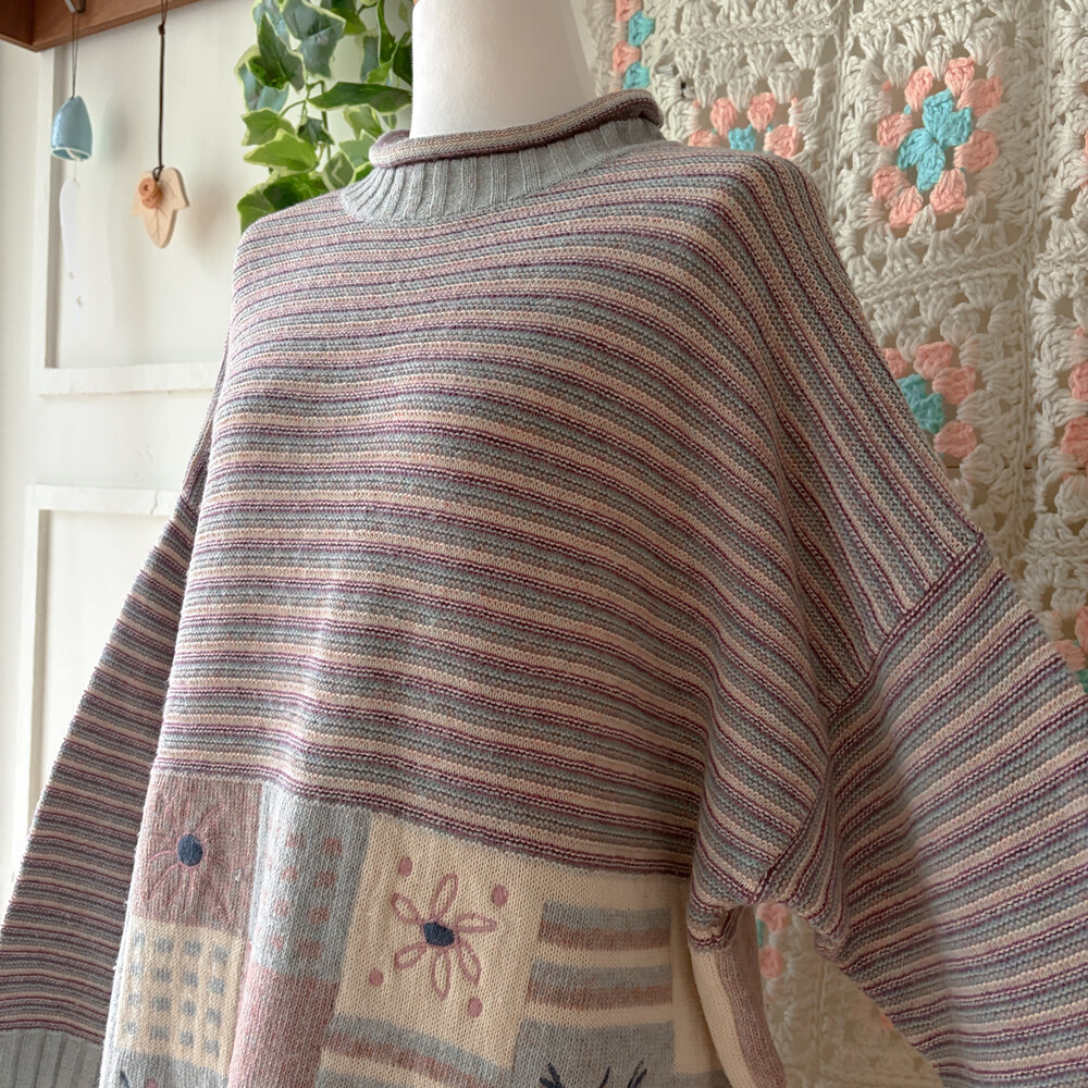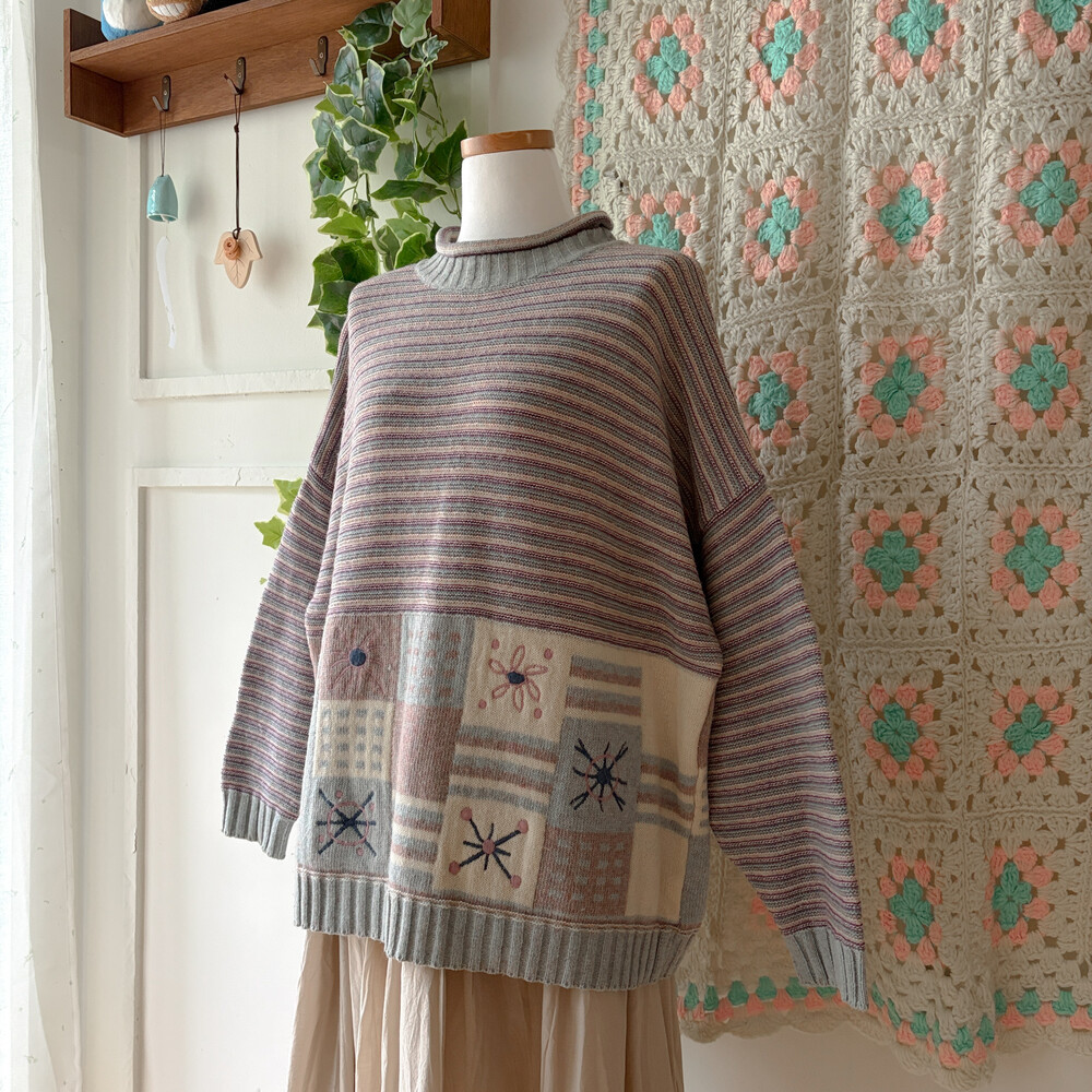 pastel square pattern half-neck knit