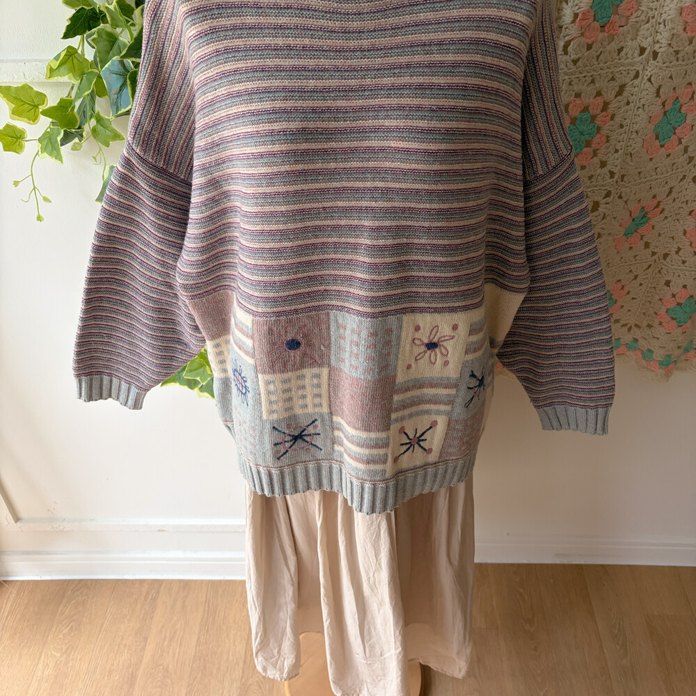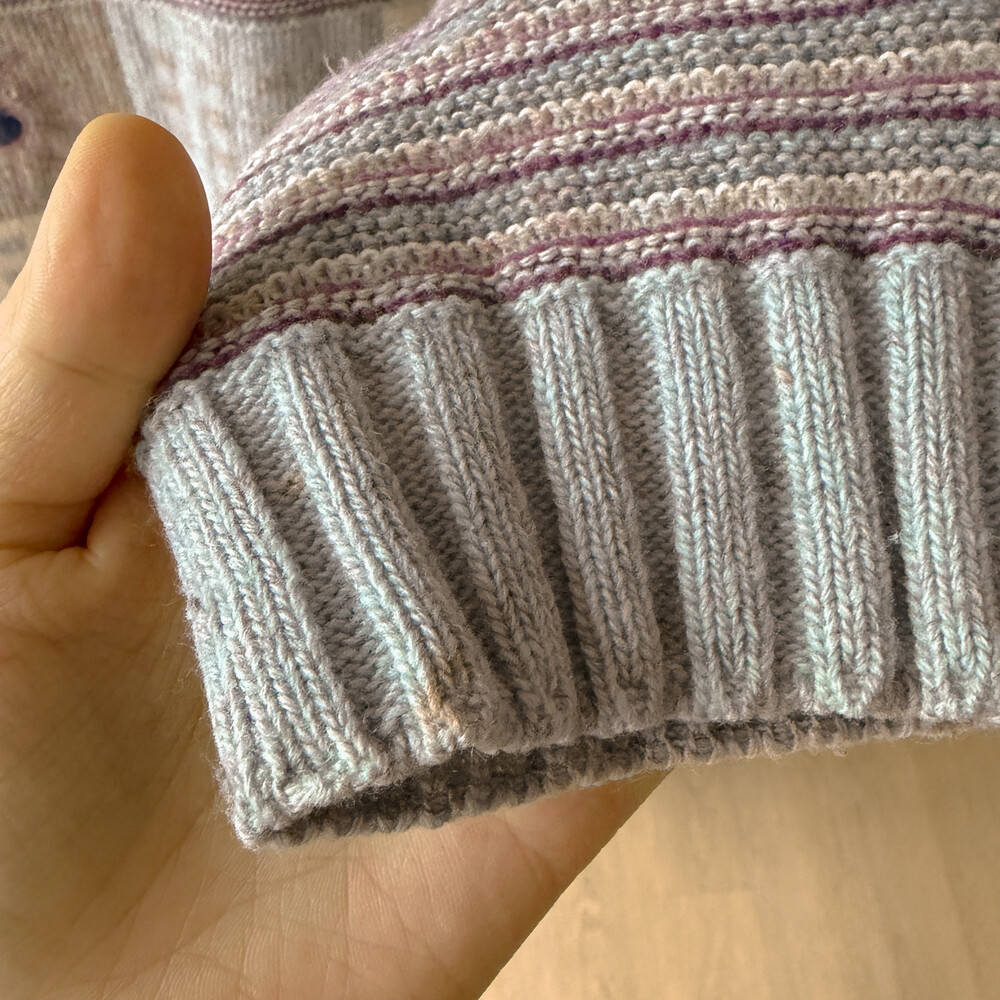 스트라이프에 밑단 사각 패턴이 들어가 있는 귀여운 니트랍니다