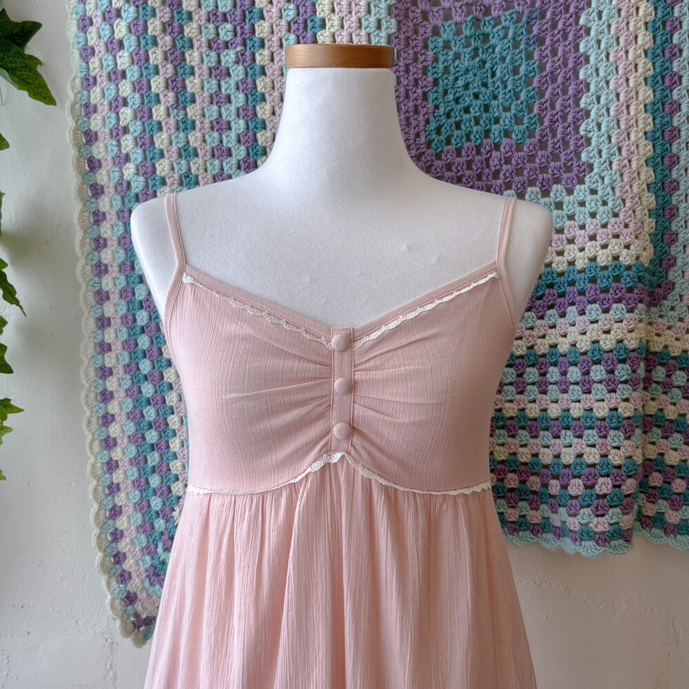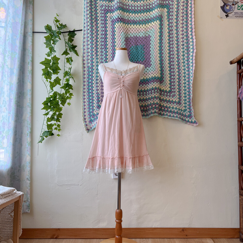 연분홍 색감의 코튼 끈원피스예요