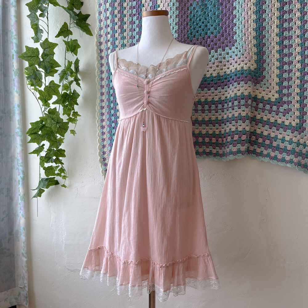 light pink hemline lace 3button ops