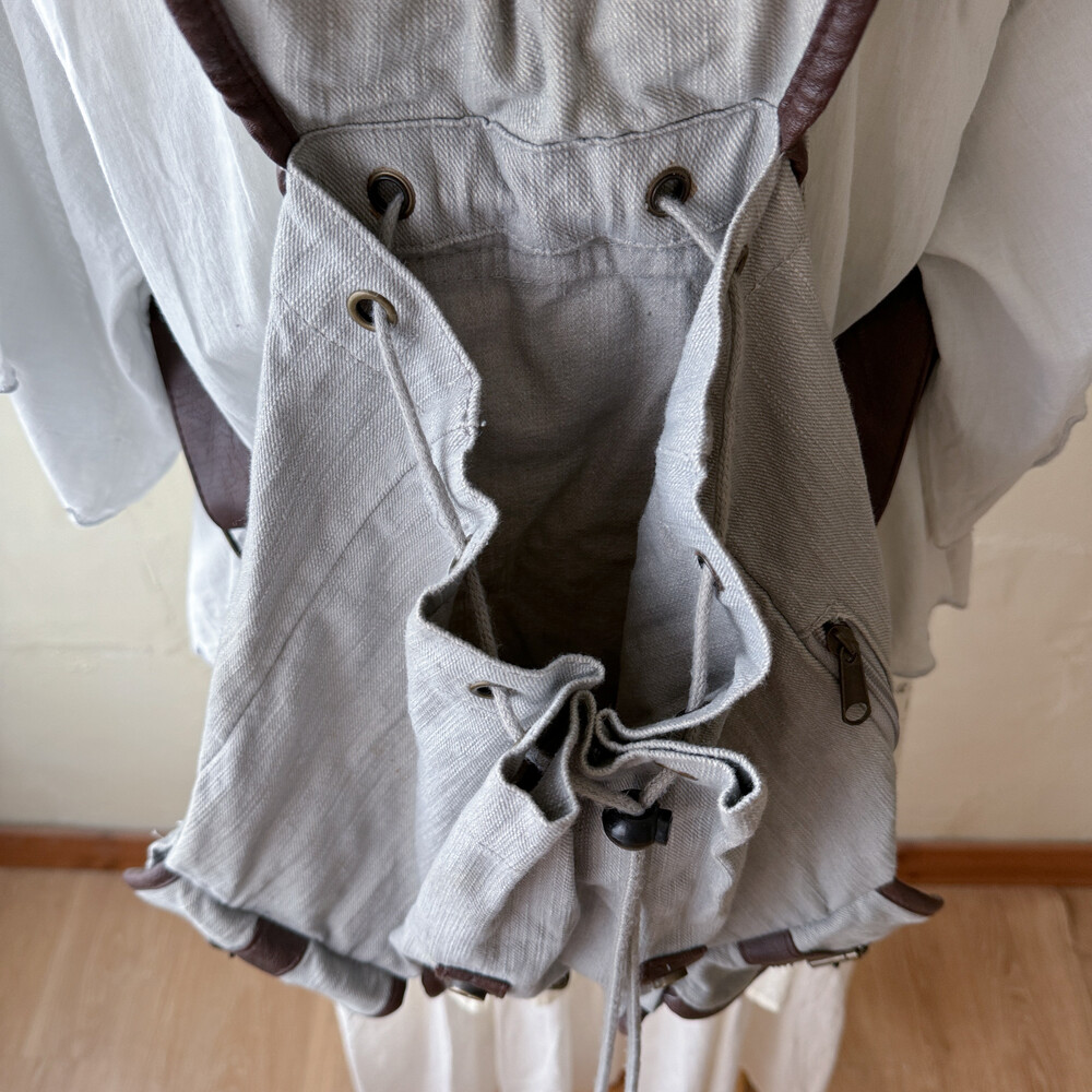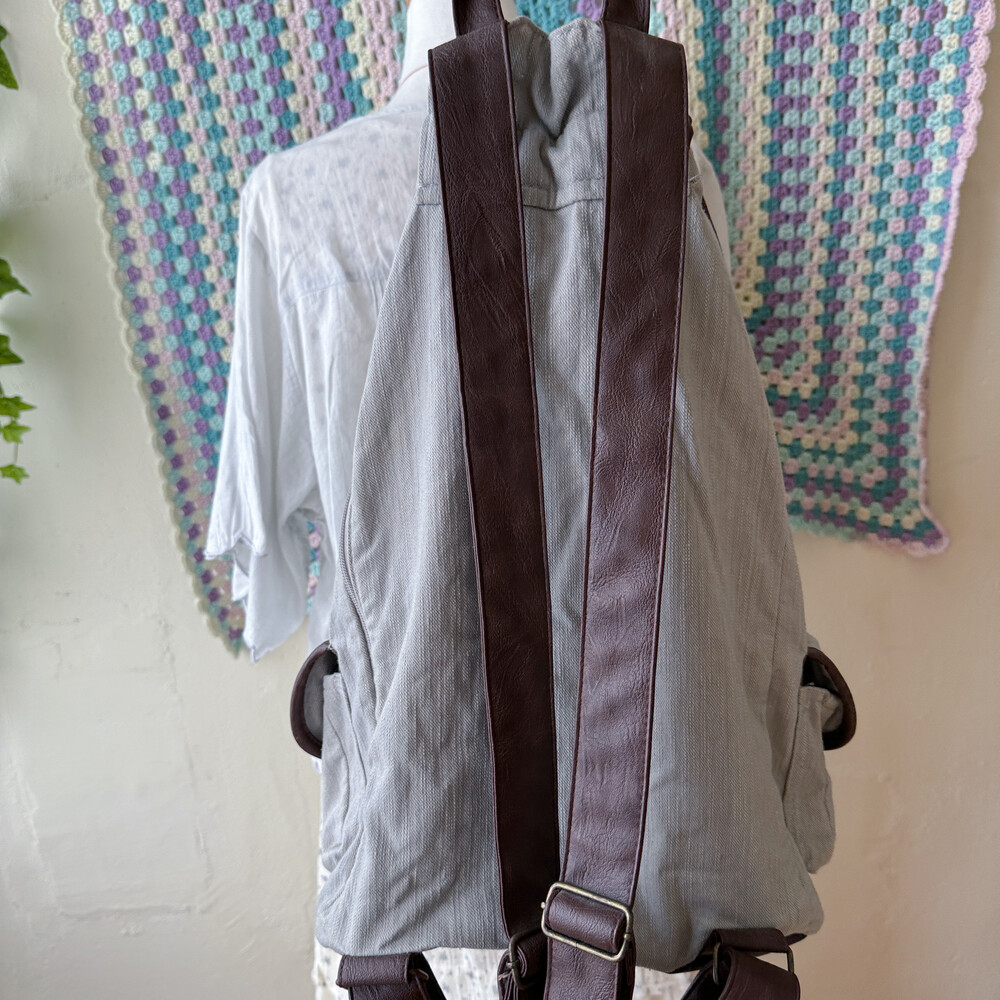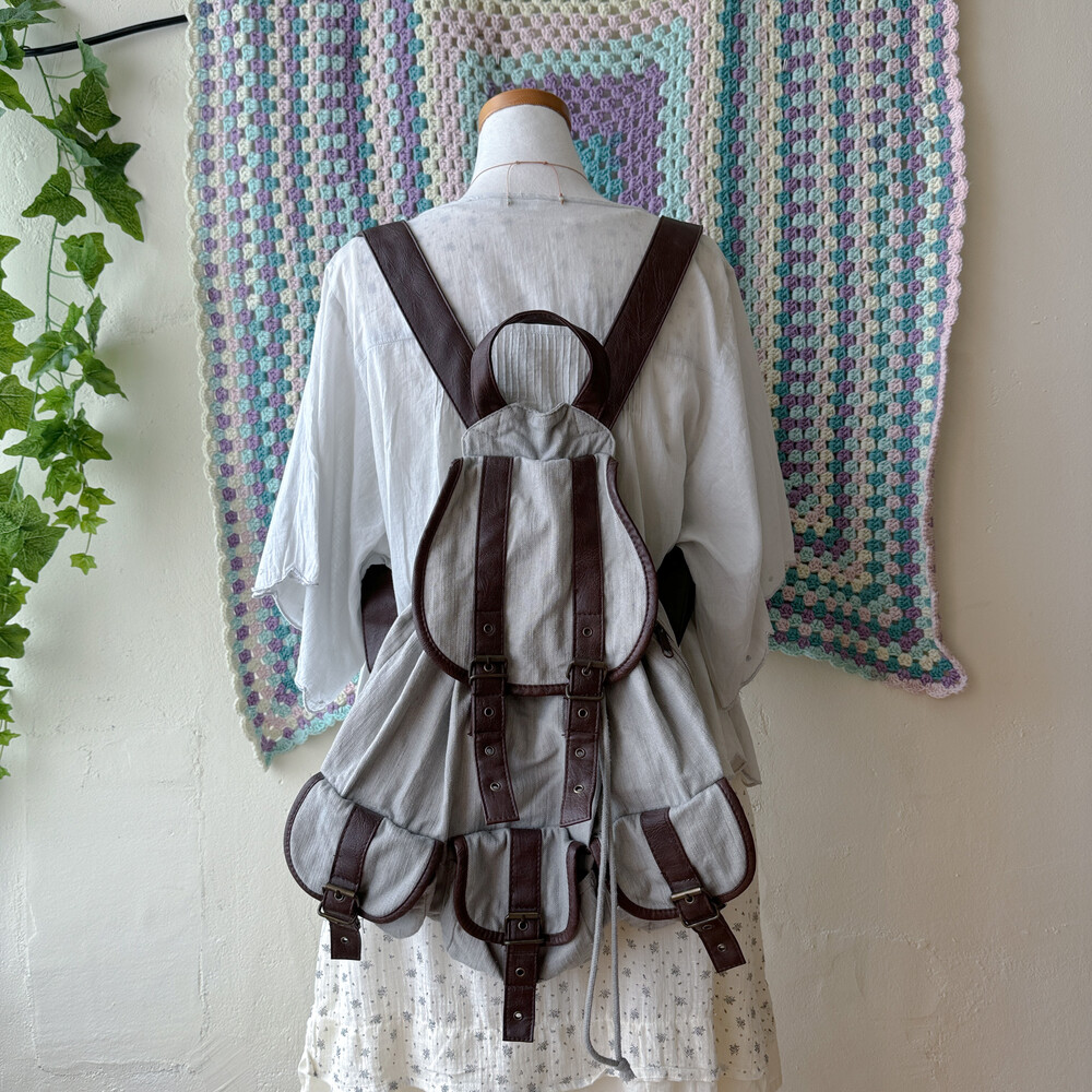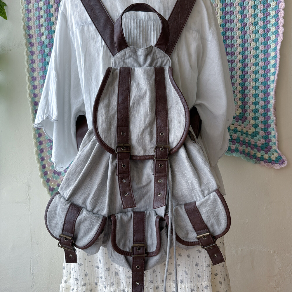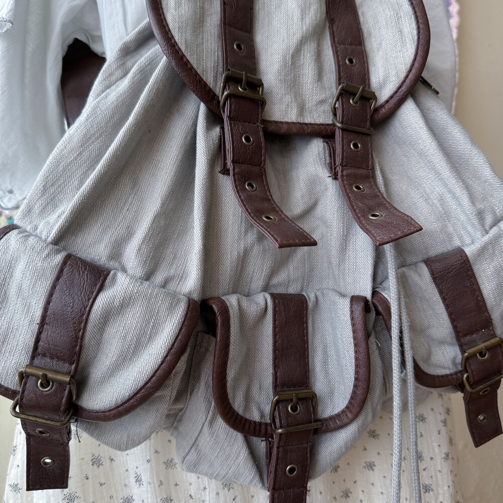 gray base brown line 3 pocket backpack