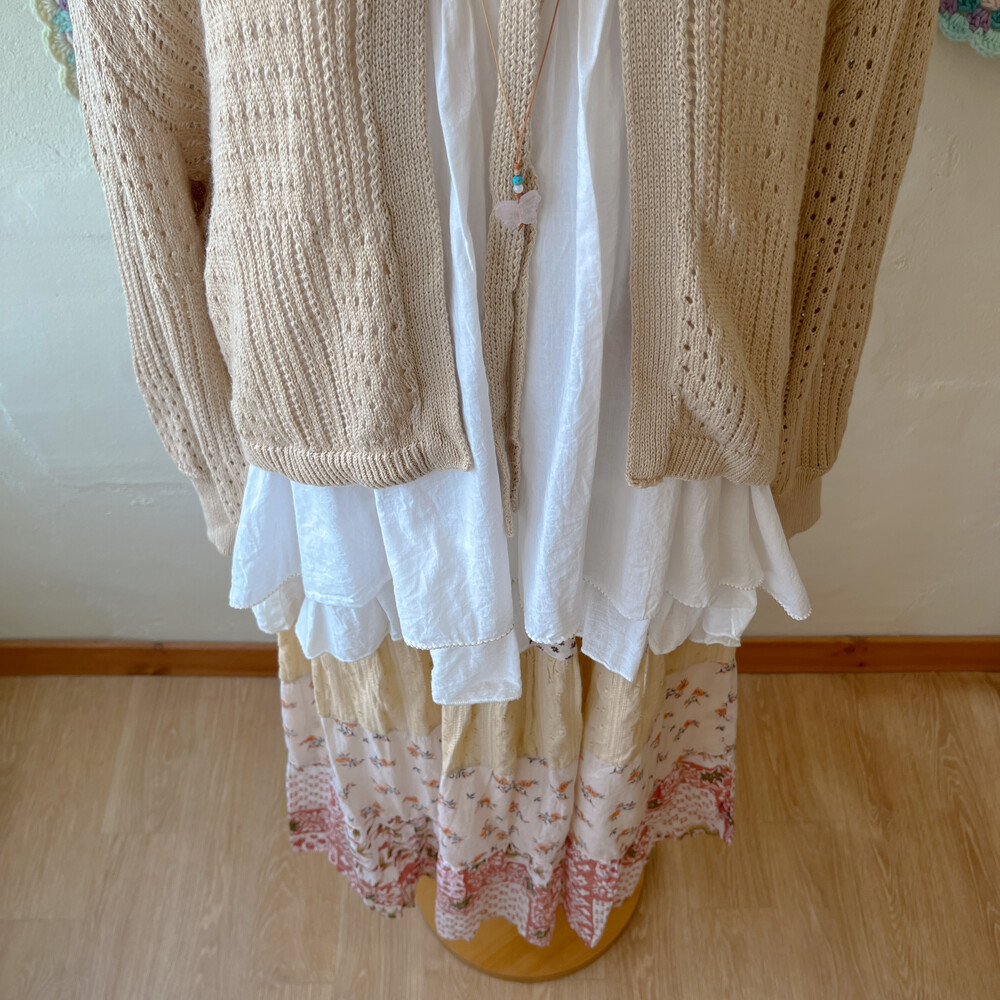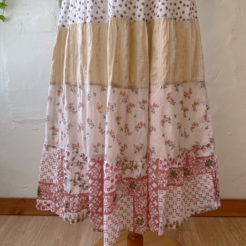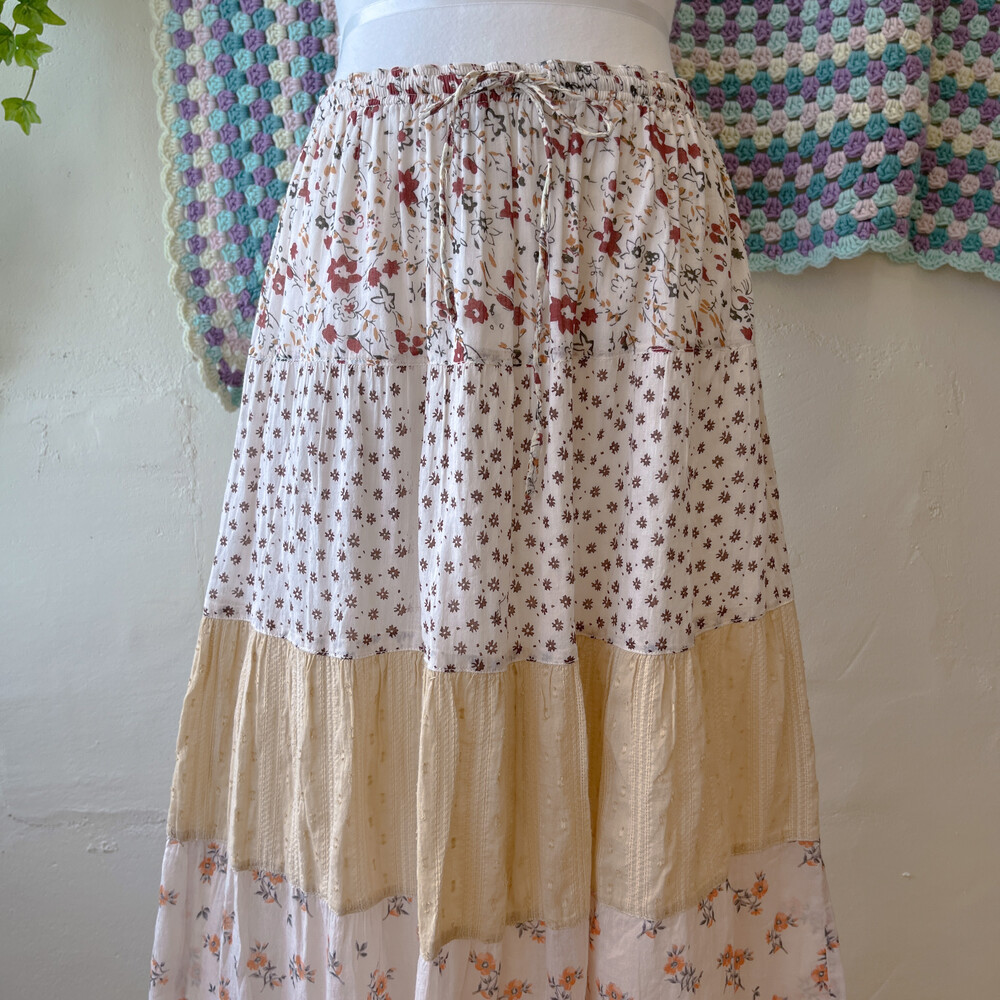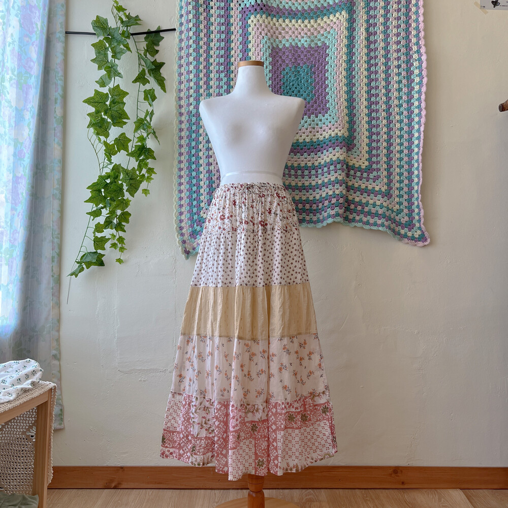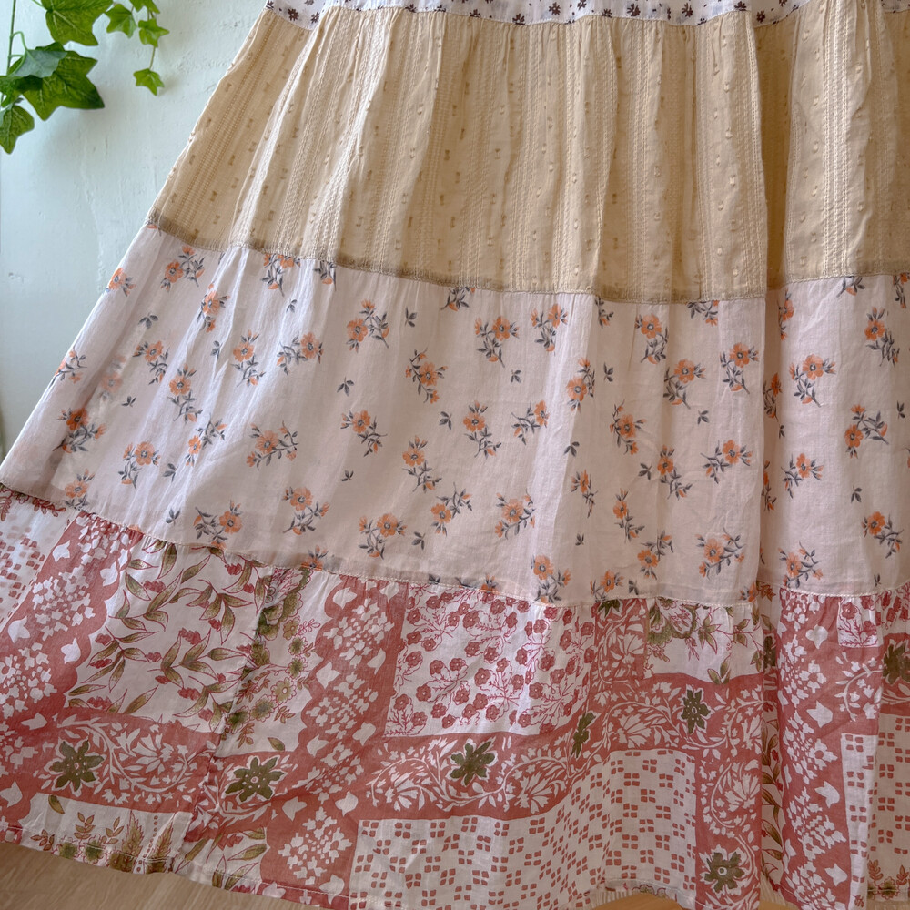 웜한 색감의 코튼 패치 스커트예요